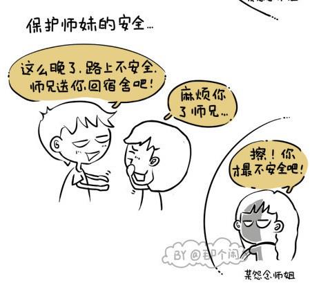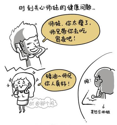 @那个闲的“师兄师姐的那些事那些情”系列漫画画风简单可爱,以搞笑又写实的方式从师兄爱帮师妹、师弟拥护师姐和师姐爱护师弟三个角度,描述了高校男女间的“爱恨情仇”,让不少网友都直呼“华丽丽地中枪了”!