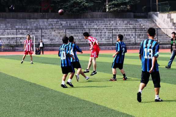 10月28号中午12点30分,哨声响起,法学院开球,E组一场激烈的比赛拉开帷幕。 上半场开始,法学院8号进攻,但在边界被对方压制出界,软件门将发球但却误传给法学院。不过软件比较活跃,不断抢到球,发起进攻。双方展开激战,但软件更胜一筹,9号射门取得进球,1比0。法学不甘示弱,9号持球进攻,连过2人,但在对方强劲的防守下,未得机会,反倒失球,给软件创造机会。但法学院门将强悍,软件未能进球。双方你来我往,但法学院进攻方面略占优势且门将防守强悍,连搓软件的几次进攻。双方在中场展开激烈拼抢,最后为缓解局势,法学将球猛踢出界。之后软件多次脚球,但在对方强悍的防守下未能进球。两方都互不相让,在激战中软件犯规,法学罚定位球,3号将任意球直接轰入对方大门,双方比分变成1:1。此后双方虽然都有人带球突破,但到球门时均被化解。于是双方僵持,一直到上半场结束都未有人进球。法学9,10,11号表现抢眼,软件14号射门未进。最后法学将8号换成7号,上半场结束。 上半场双方主要以防守为主,各进一球,带着进攻的热情,双方进入了下半场。 下半场一开始,软件10号就一记头槌,门将未能阻挡,软件一片欢呼,比分改写为2:1。法学10号多次射门未进,均被软件踢出界。然后法学犯规,软件9号角球未进。软件得球后反击,由13号将球射进,比分变成3:1。而后法学多次组织进攻,但在对方强悍的防守下几次无功而返,即使是对方9号犯规,法学也未能把握住机会。3号与10号进攻气势汹汹,但屡屡失手。一段对峙之后,法学10号护球突破,被夹击后传球给91号,91号直接打门,比分变成3:2. 比赛已接近尾声,但法学越打越勇,3号梅开二度,软件门将未能守住,场上比分再次被扳平,3:3。这时双方均紧张起来,双方的积极性被充分调动。法学10号又趁机再下一城,比分被反超,4:3。法学10号激动脱衣,不过很无奈地被罚黄牌。但胜利的女神并未站在法学这边。在最后时刻,还未等法学平息高兴,软件3号又进一球,双方4:4打平,全场比赛结束。软件3号全场上演帽子戏法,表现神勇,可谓是本场比赛的场上最佳球员。 这场比赛刚开始软件占优势,后又被反超,整场比赛跌宕起伏,不禁让人想起来里昂和马赛那场惊世骇俗的平局。在最后几分钟内比赛竟出现这样的情况,真是世事难料啊!软件和法学联袂为大家奉献了一场难以忘怀的经典。 麓山体博通讯社记者 张琦 |